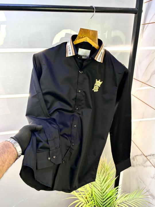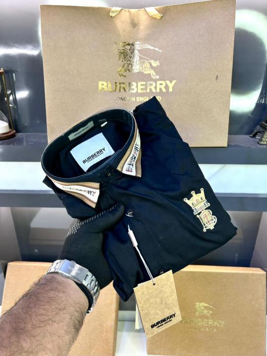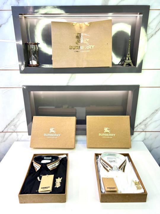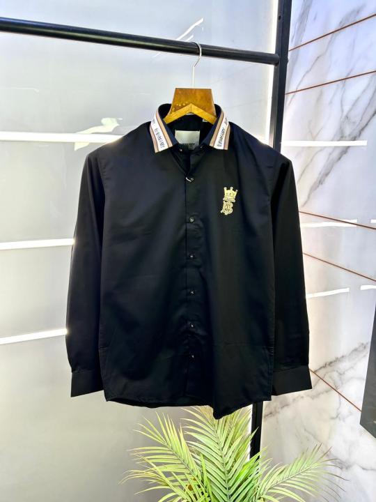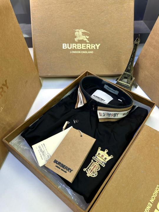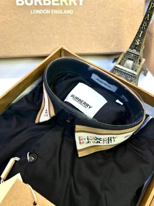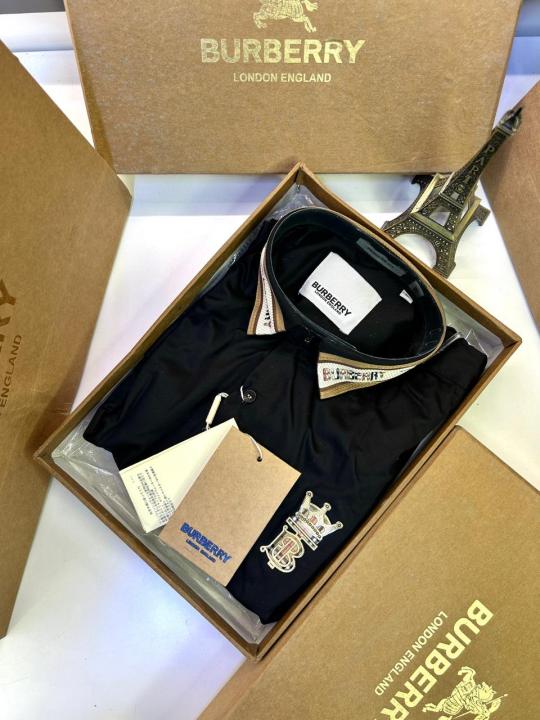 Home Shirts Burberr y Logo Black Premium Shirt With Brand Box Packing and Carry Bag F3217-BL