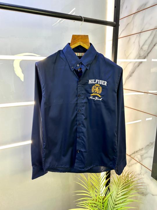 Tommy_Hilfiger Navy Oxford Lycra Premium Shirts F2748-NY