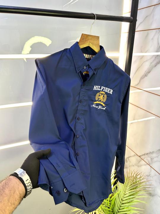 Home Shirts Tommy_Hilfiger Navy Oxford Lycra Premium Shirts F2748-NY